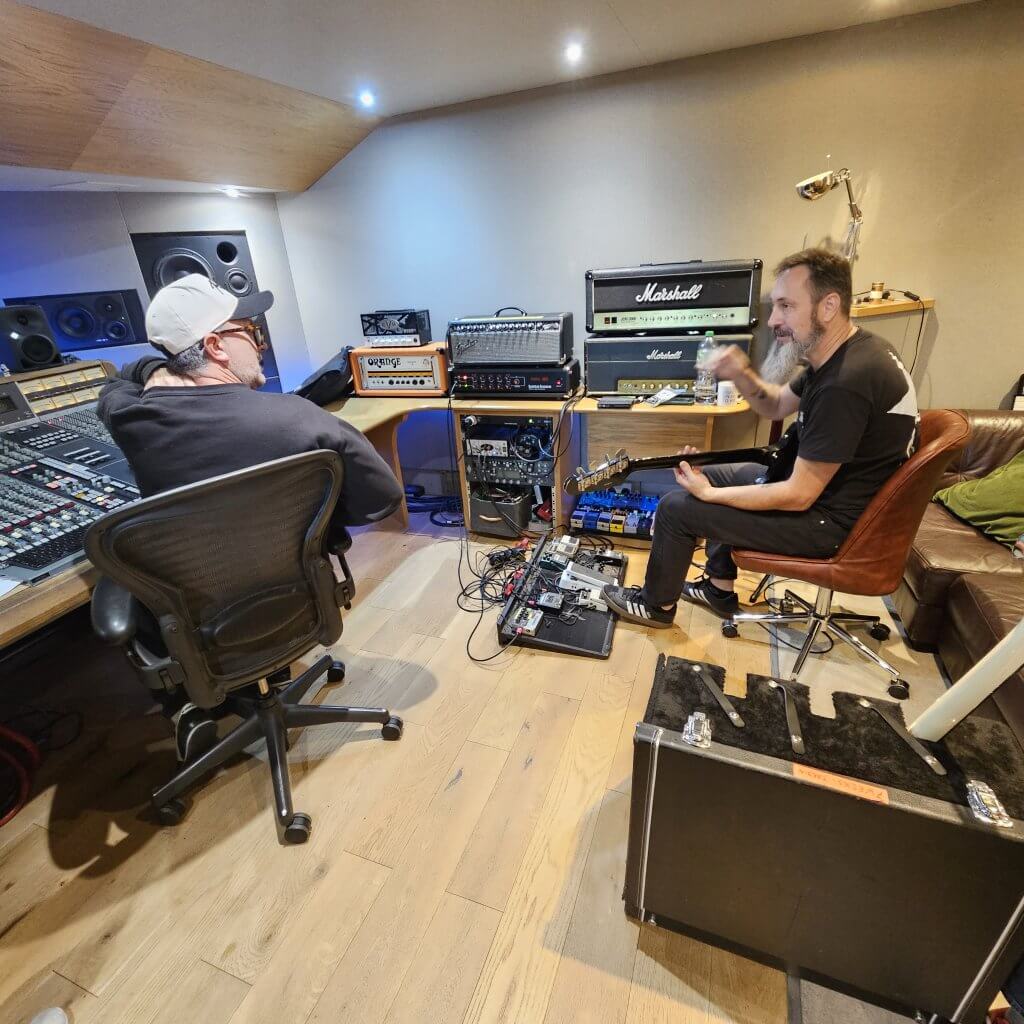Mi-septembre, nous avons eu l’opportunité d’aller en studio en Angleterre avec Adrian Bushby, producteur et ingénieur du son de renom, doublement récompensé aux Grammy Awards pour ses collaborations avec Foo Fighters et Muse.